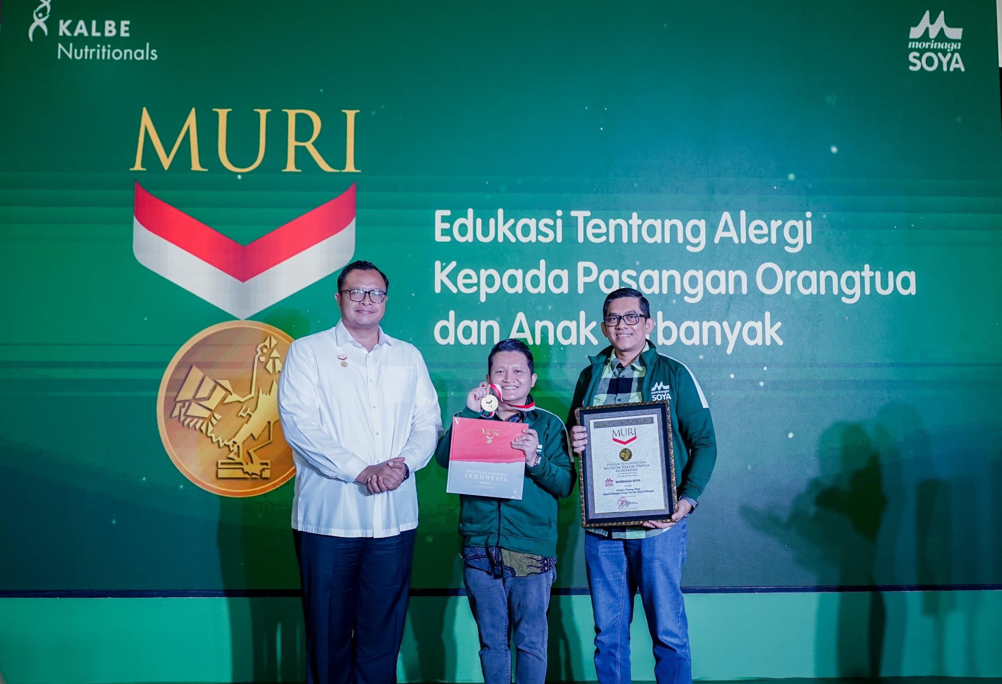 Morinaga Soya juga menerima penghargaan dari Museum Rekor Indonesia (MURI) atas konsistensi edukasi alergi terhadap orang tua dan anak terbanyak di Indonesia. Melalui Soyalympic, Morinaga mengajak seluruh pihak untuk ikut menciptakan ekosistem yang lebih inklusif bagi anak-anak sensitif. Karena setiap pilihan kecil hari ini adalah pijakan penting menuju masa depan yang lebih baik. [Dok. Morinaga]