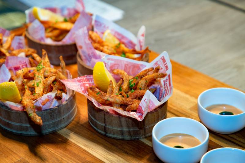 Menu take over dibuka dengan deretan appetizer berupa roti sourdough Pan con chicharron, Grilled pumpkin dengan topping burrata, dan Preserved bell peppers, acar paprika segar dengan daun peterseli. Olahan ikan Coastal ceviche dan Beef empanadas dengan Ilajua sauce juga bisa jadi pilihan pembuka.