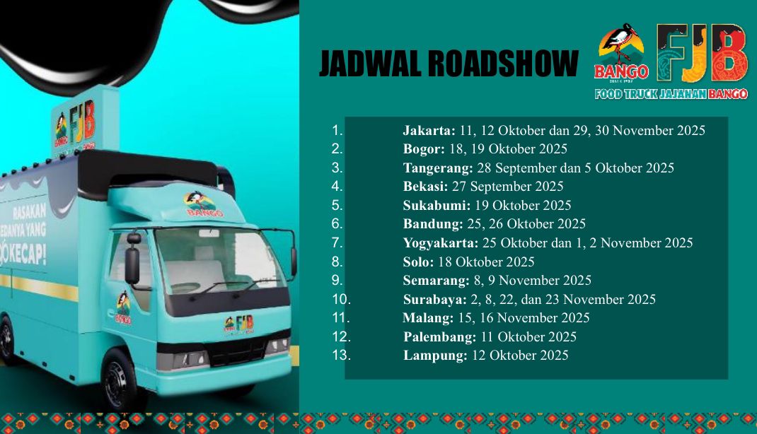 “Roadshow ini berlangsung dari September sampai November 2025. Nantikan kehadiran Foodtruck Jajanan Bango di kotamu dan mari eksplorasi kuliner yang ‘100% Kecap’!” tutup Lendi.(Arfi | Dok. Bango)