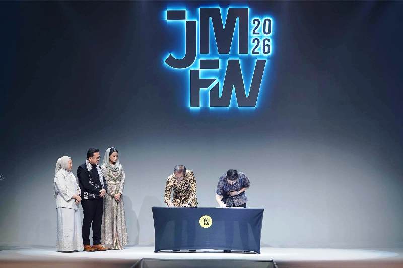 JMFW 2026 juga menghadirkan kolaborasi besar antara Asia Pacific Rayon (APR) dan PT Duniatex, yang menandatangani nota kesepahaman (MoU) dalam pengembangan bahan baku ramah lingkungan untuk industri tekstil nasional. Langkah ini memperkuat arah industri fesyen muslim Indonesia menuju keberlanjutan (sustainability fashion).